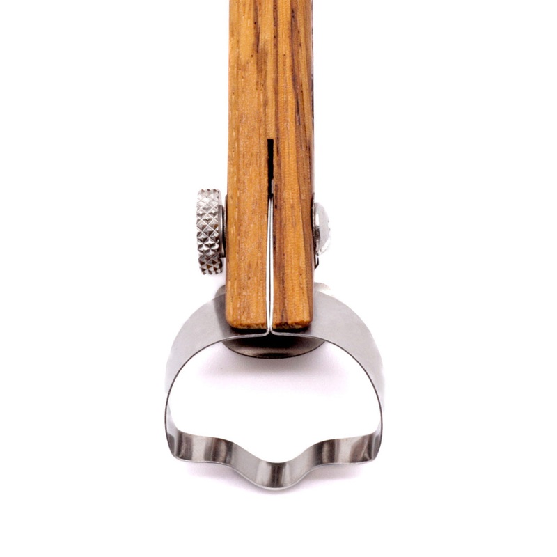 The R201 Sunrise XL Handheld Clay Extruder from has an angled, stainless-steel blade that leaves clean edges and pulls through clay effortlessly to create a larger handle shape that has a rounded rise in the middle.